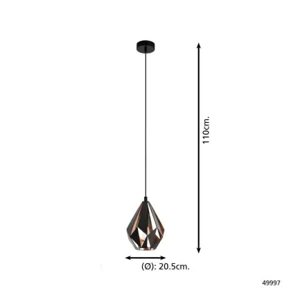 Eglo Pendelleuchte Carlton 1 Schwarz, Bernstein | Geeignet für E27