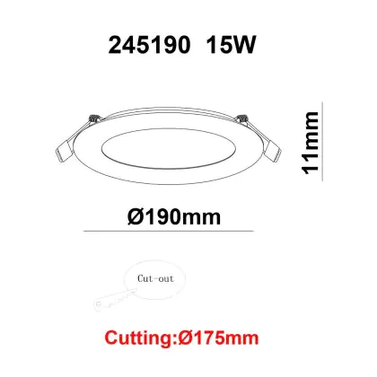| Herstellername | White label LED Downlight Round UltraSlim 15W 1200lm 840 CutoutØ175mm FrameØ190mm | |