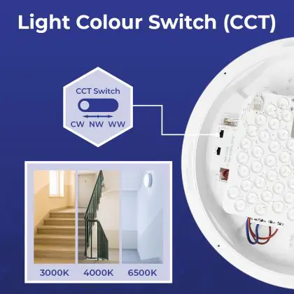 2. CCT: Sie wählen über einen Schalter aus 2 oder 3 festen Farben aus, z. B. Warmweiss oder Kaltweiss.