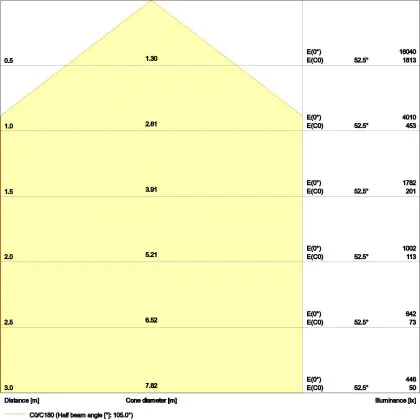 Der Abstrahlwinkel bezeichnet den Winkel, in dem das Licht aus der Lichtquelle ausgestrahlt wird. Er wird in Grad (D) angegeben. Je geringer die Gradzahl des Abstrahlwinkels ist, desto kleiner ist auch der Durchmesser des Lichtkegels, den die Lichtquelle produziert.