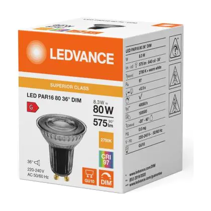 Ledvance LED PAR16 GU10 Reflektor 8.3W 575lm 36D - 927 | Höchste Farbwiedergabe - Dimmbar - Ersatz Für 80W