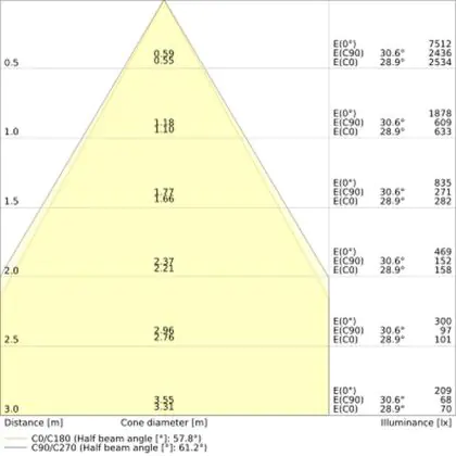 Der Abstrahlwinkel bezeichnet den Winkel, in dem das Licht aus der Lichtquelle ausgestrahlt wird. Er wird in Grad (D) angegeben. Je geringer die Gradzahl des Abstrahlwinkels ist, desto kleiner ist auch der Durchmesser des Lichtkegels, den die Lichtquelle produziert.