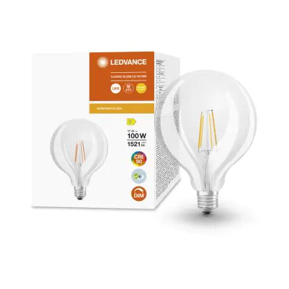 Ledvance Superior Classic LED E27 Globe Fadenlampe Klar 11W 1521lm - 927 | Höchste Farbwiedergabe