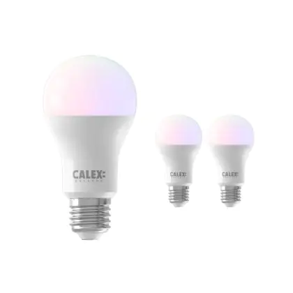 Mehrfachpackung 3x Calex Smart Tuya Wifi E27 Birne 8.5W 806lm - 822-840 Abstimmbares Weiß | RGBW - Dimmbar - Ersatz für 60W