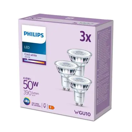 | Herstellername | Box 3 stuks - Philips LED Spot - 50 W - GU10 - Koelwit licht | |