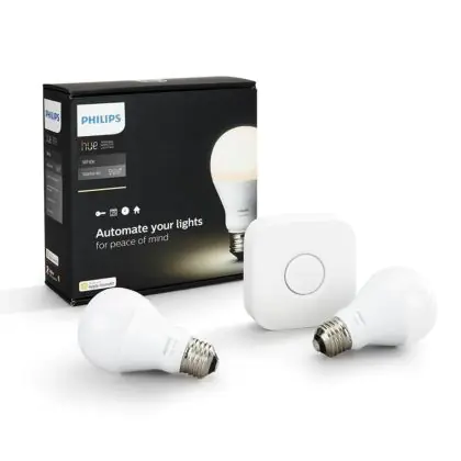 Philips Hue Smart Home LED Starter Kit | Bridge + 2x E27 LED Glühbirne Weiß 2700K | Dimmbar
