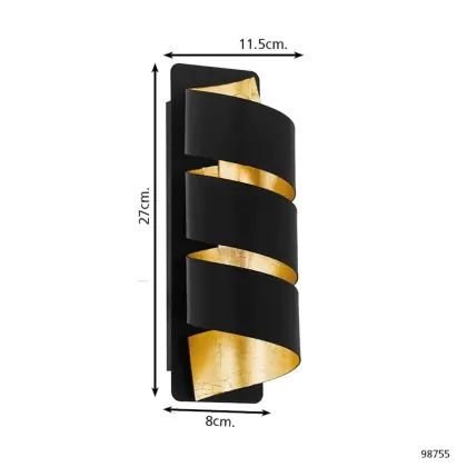 Eglo Applique Murale Elizondo Noir, Dorée | Convient pour E14
