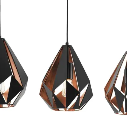 Eglo Suspension Luminaire Carlton 1 Noir, Cuivre | Convient pour 3x E27