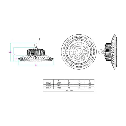 | Nom du fabricant | White label LED Highbay 150W 840 90D ND Black | |