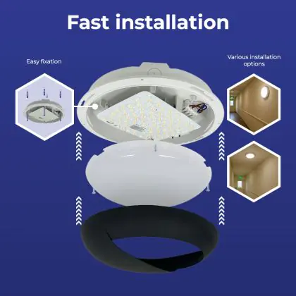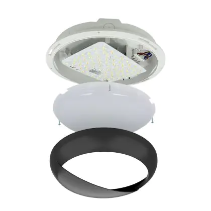 Description Hublot LED Pro V2 Blanc 12/16/20W 2400lm - 830-840-865 CCT | 325mm - IP65 - Détresse 3H + Visière Cercle Noir