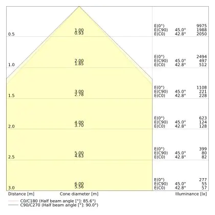 Le code couleur se compose de l'indice de rendu des couleurs (IRC) et de la température de couleur (Kelvin). Le premier chiffre indique le rendu des couleurs (1 = très mauvais rendu des couleurs, 9 = meilleure authenticité des couleurs). Le deuxième et troisième chiffre indiquent la température de la couleur. Exemple : Le code couleur "830" indique que la lampe a un bon rendu des couleurs (8) et une couleur de lumière blanche chaude (30 = 3000K). |