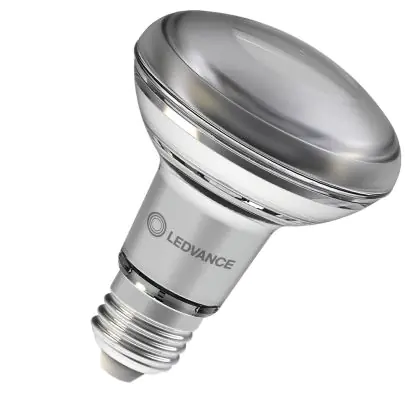 La lampe LED Ledvance Performance Spot LED E27 R80 8.5W 670lm 36D - 827- | Dimmable - Remplacement 100W avec culot E27 (Ampoule à vis standard) est le remplacement idéal des lampes à incandescence et halogènes classiques. En raison de la faible consommation d'énergie, vous économisez considérablement sur vos coûts d'énergie. Les lampes à LED Ledvance n’utilisent qu’une petite partie de la puissance (8.5 W) que les lampes à incandescence et halogènes classiques (100 W). Les lampes à LED ont une excellente classe énergétique F, ce qui signifie qu'elles sont très écologiques et peuvent être recyclées après utilisation. En raison de leur durée de vie considérable de 25000 heures, vous n’aurez pas à les changer de si tôt.