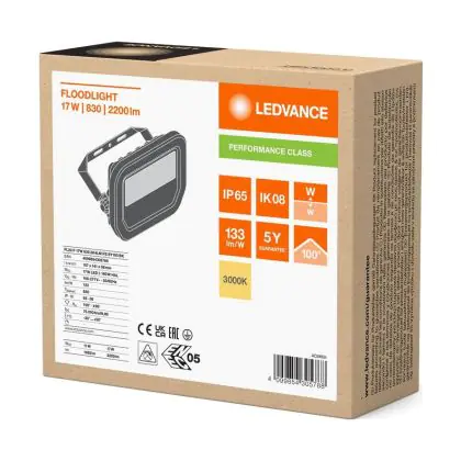 Le Ledvance Projecteur LED Aluminium Noir 17W 2200lm 100D - 830 | IP66 - Symétrique permet une économie d’énergie importante tout en conservant une excellente qualité d’éclairage. Sa technologie LED Intégré lui permet également d’avoir une très longue durée de vie pouvant aller jusqu’à 100000 heures. Ce projecteur LED est étanche, avec son indice de protection IP66 lui permettant d’être hermétique à la poussière et à l’eau. Disponible dans la couleur 3000K - Blanc Chaud et un flux lumineux de 2200 Lm, ce projecteur LED est la solution idéale pour le remplacement de vos anciens projecteurs conventionnels.