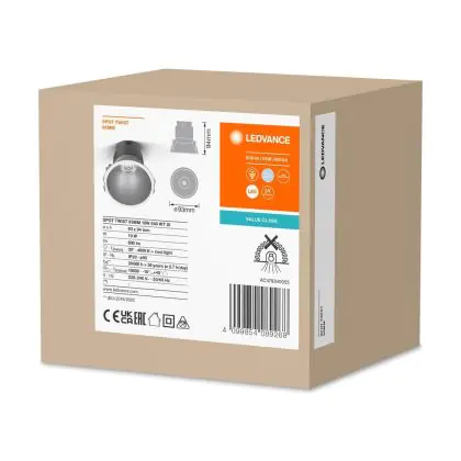 Ledvance Spot LED Twist Pro Aluminium Argent Réflecteur 10W 800lm 30D - 840 | 93mm - Diamètre 85mm - IP20 est un spot LED encastrable. Ce luminaire est conçu pour un éclairage d’accentuation pour un usage domestique ou bien professionnel. LED Intégré, ce spot LED Ledvance en Aluminium a besoin d’une place nécessaire de 85mm de largeur et mm de profondeur. Ce luminaire est compatible avec une ampoule GU10, il est important de faire attention si vous décidez de changer d’ampoule.