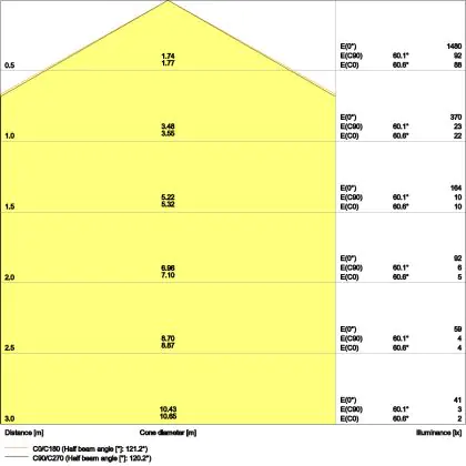 Le code couleur se compose de l'indice de rendu des couleurs (IRC) et de la température de couleur (Kelvin). Le premier chiffre indique le rendu des couleurs (1 = très mauvais rendu des couleurs, 9 = meilleure authenticité des couleurs). Le deuxième et troisième chiffre indiquent la température de la couleur. Exemple : Le code couleur "830" indique que la lampe a un bon rendu des couleurs (8) et une couleur de lumière blanche chaude (30 = 3000K). |