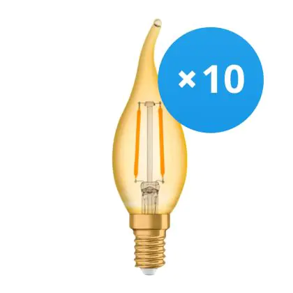 Description Lot 10x Ledvance Vintage 1906 LED E14 Bougie Dorée 1.5W 120lm - 824 | Remplacement 15W
