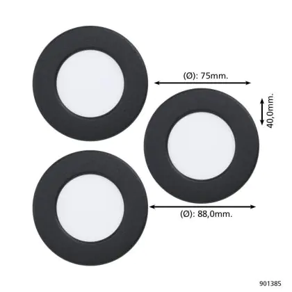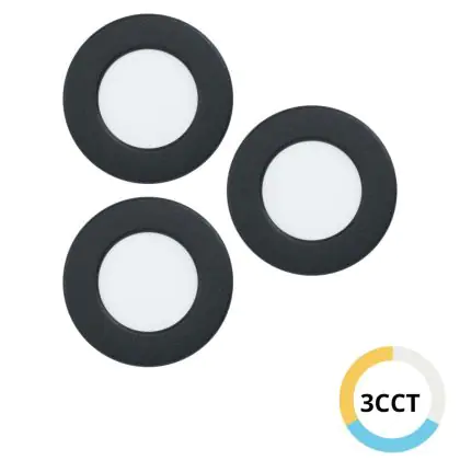 Lot 3x Eglo Encastré Spot Fueva 6 Plastique Noir 11.1W 1350lm - 827-840-865 CCT