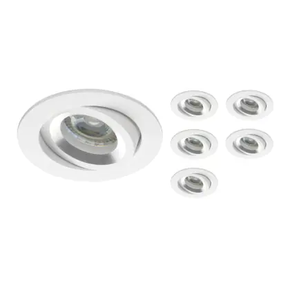 Lot 6x Encastré Spot Drome MR16 inclinable Blanc | Diamètre 69mm - GU10 Culot est un spot LED encastrable. Ce luminaire est conçu pour un éclairage d’accentuation pour un usage domestique ou bien professionnel. Fixture Retrofit, ce spot LED Budgetlight en Aluminium a besoin d’une place nécessaire de 80mm de largeur et 75mm de profondeur. Ce luminaire est compatible avec une ampoule GU10, il est important de faire attention si vous décidez de changer d’ampoule.