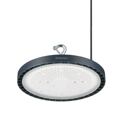 Le Philips Highbay LED Coreline BY121P G5 Aluminium 134W 20000lm 85D - 865 | IP65 - Dali Dimmable est un puissant luminaire qui est très souvent utilisé pour l’éclairage industriel. Ce luminaire suspendu propage un puissant flux lumineux de 20000 Lm et offrant un excellent rendu de couleurs par rapport aux luminaires traditionnels. Cet high-bay LED est capable de résister aux différentes températures extrêmes que l’on peut retrouver dans les hangars, entrepôts ou autres halls industriels. La technologie LED Intégré sur ce luminaire permet de faire d’importantes économies d’énergie. En effet, l’high-bay propose une puissance de 134W pour un équivalent de W pour les appareils classiques et dispose d’une durée de vie pouvant aller jusqu’à 50000 heures.