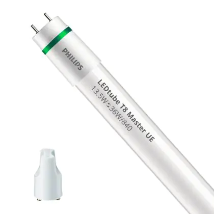 Ce tube LED Philips tube LED 120cm | 4000K 13.5W - Master UE est l’un des produits les plus éconergétiques en remplacement des tubes T8 classiques. Avec ce tube LED vous êtes donc assuré de sa qualité. Avec une puissance de seulement 13.5 W, ce tube LED a la même intensité lumineuse qu’un tube classique qui consomme 36 W.