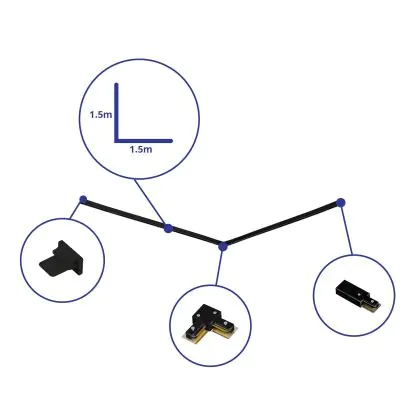 Rail Set Rail Monophasé L 1,5 x 1,5 Mètre Noir | incl. Embout, Connecteur d’Alimentation et L -Connecteur