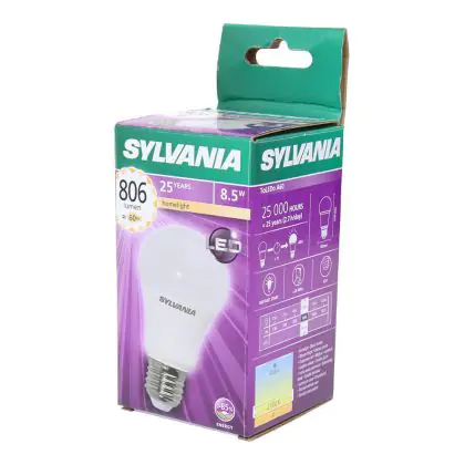Cette ampoule Sylvania ToLEDo E27 Poire Dépolie 8.5W 806lm - 827 | Remplacement 60W avec son efficacité lumineuse de lumen par watt vous permettra de profiter d’un éclairage de qualité. Avec sa durée de vie de 15000 heures, vous n’aurez pas à vous soucier de son remplacement avant quelques années.